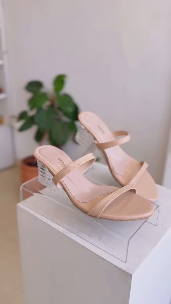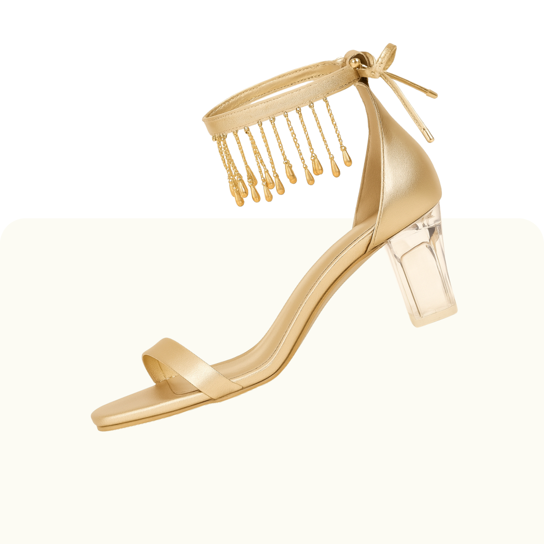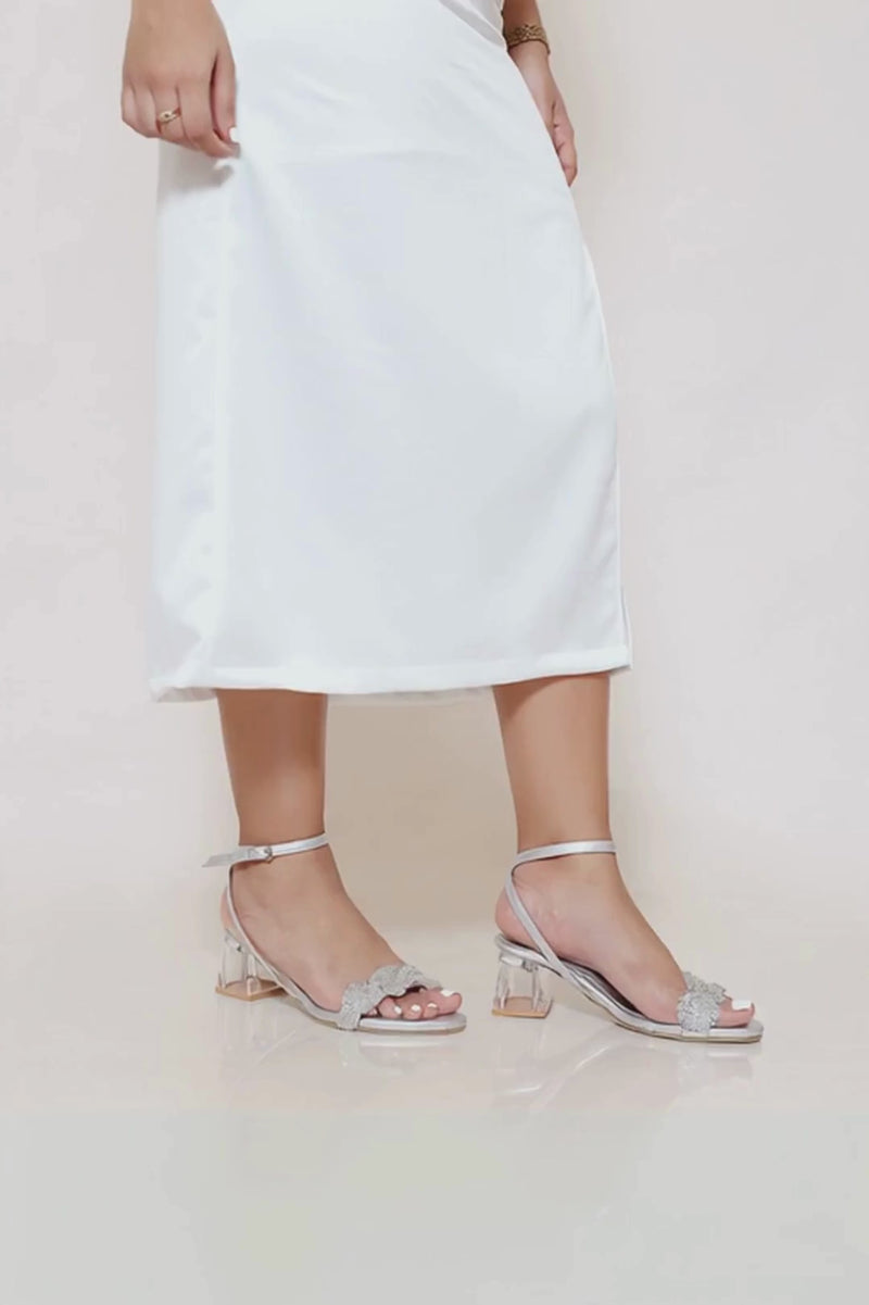 BLACK ANKLE STRAP TRANSPARENT BLOCK HEELS